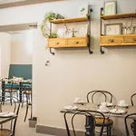 Fully functional, surprisingly big room with utensils and many plates. Exceptionally attentive personnel were eager to help with any request. The restaurant was small and my meal was superb. Spotless hotel, friendly service.